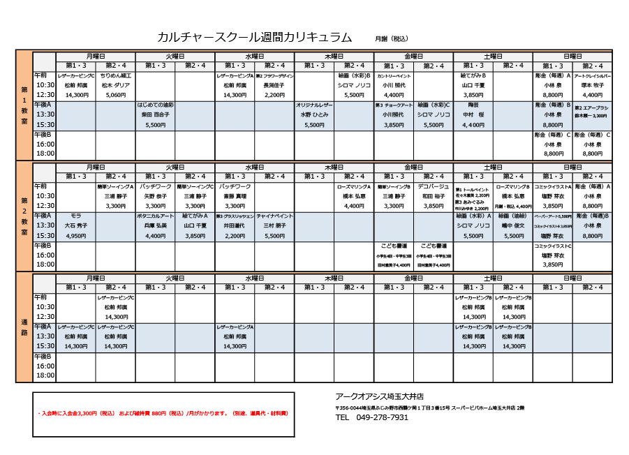 アークオアシス埼玉大井店カルチャースクールはこんなところです。