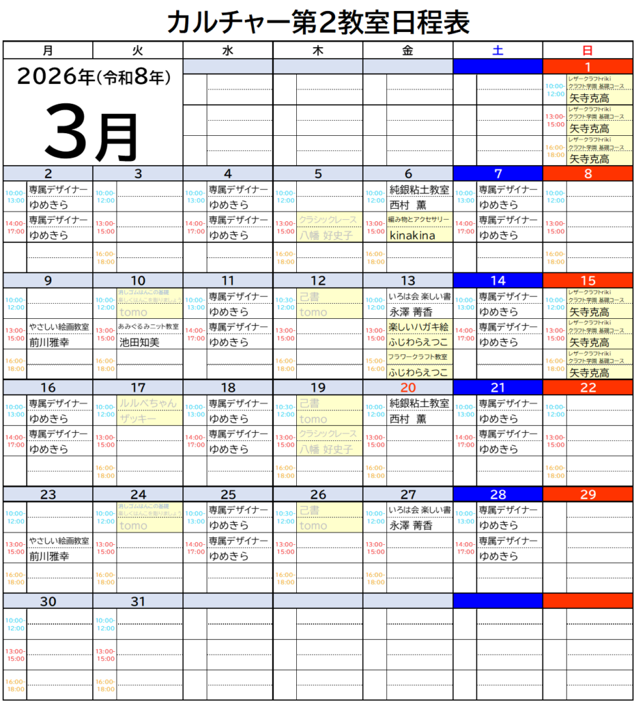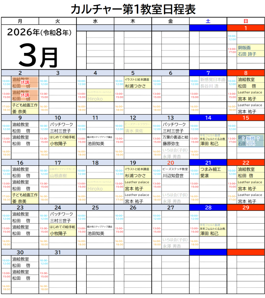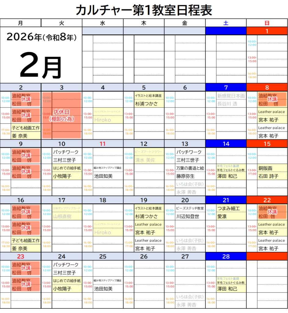 カルチャー教室-生徒募集中-