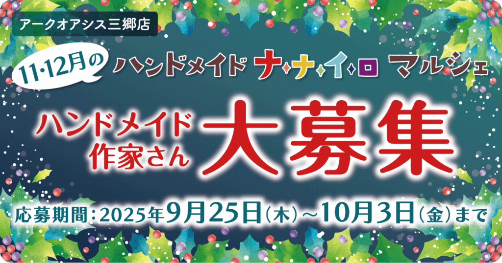 アークオアシス三郷店におきまして、ハンドメイドナナイロマルシェ「11·12月マルシェ」開催が決定いたしました!