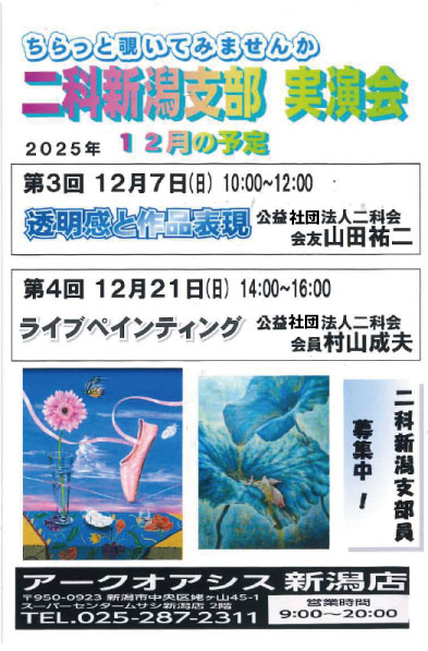 12月7日(日)、12月21(日)の2日間「二科新潟支部実演会」を開催いたします🎨🖌