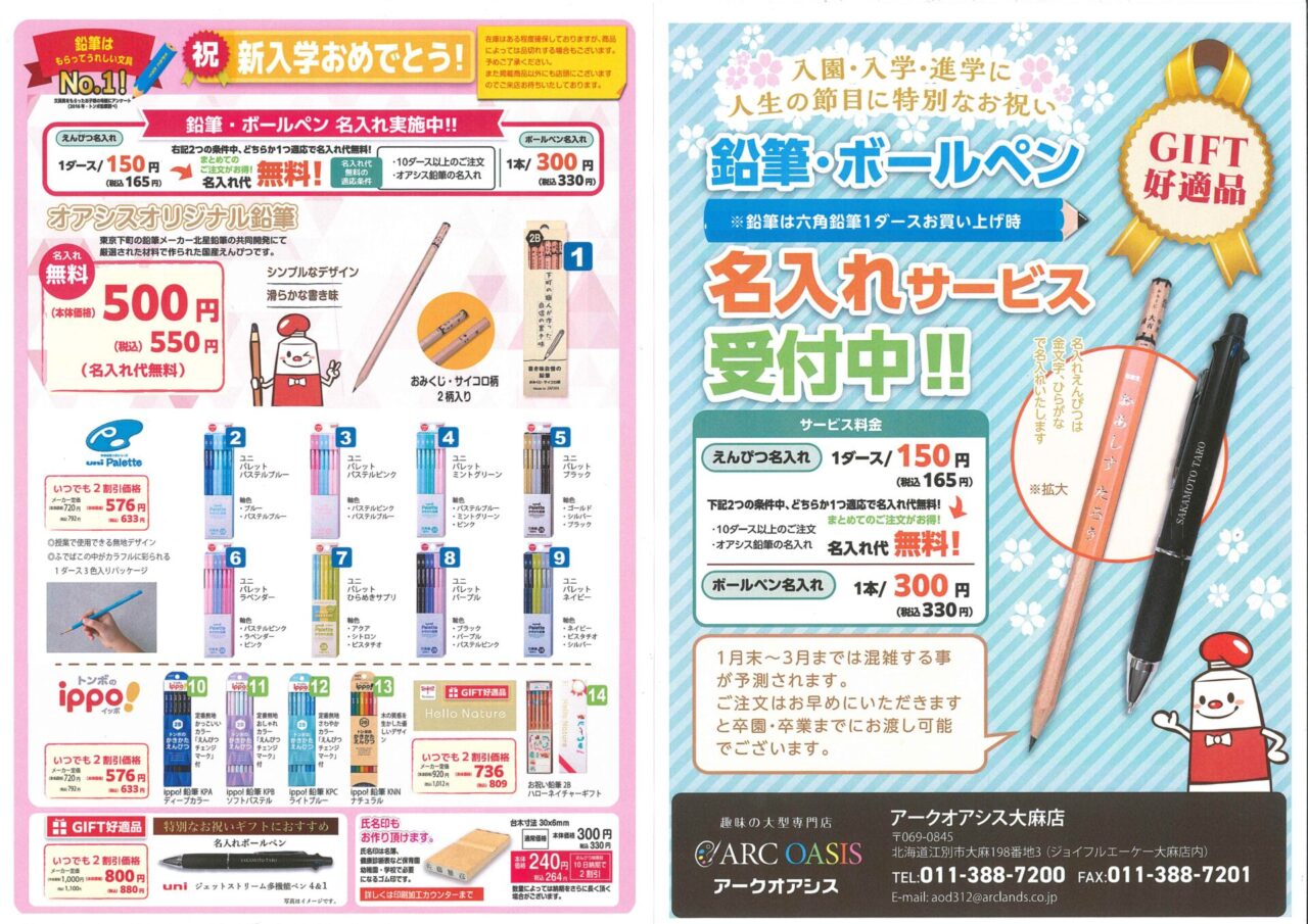 ウェブチラシ えんぴつ名前入れキャンペーン 2026年2月9日 イベント開催期間 ~4月5日(日)まで 大麻店 ダウンロード DM_裏ダウンロード DM_表ダウンロード ※詳細は店舗にお問い合わせください。 お知らせTOP