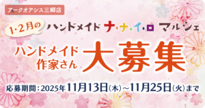 作家さん募集は2025年11月25日(火)まで マルシェ開催期間:2026年1月2日(金)~2月26日(木) ※2月3日(火)は店休日